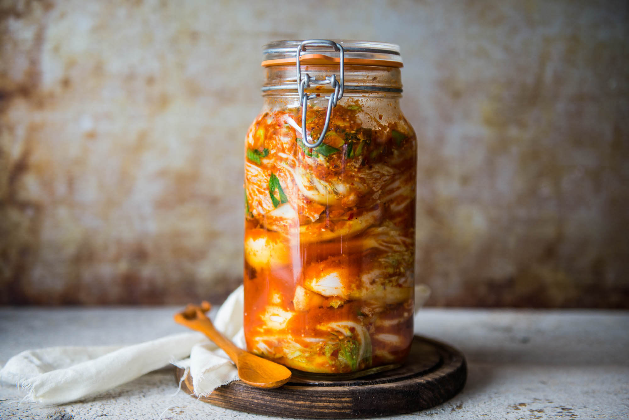 Het zout onttrekt vocht aan de kool waardoor die wat slapper wordt. Na het spoelen blijft er genoeg zout achter om de kimchi te conserveren. Bovendien heeft de peper in de kimchi ook een conserverende werking